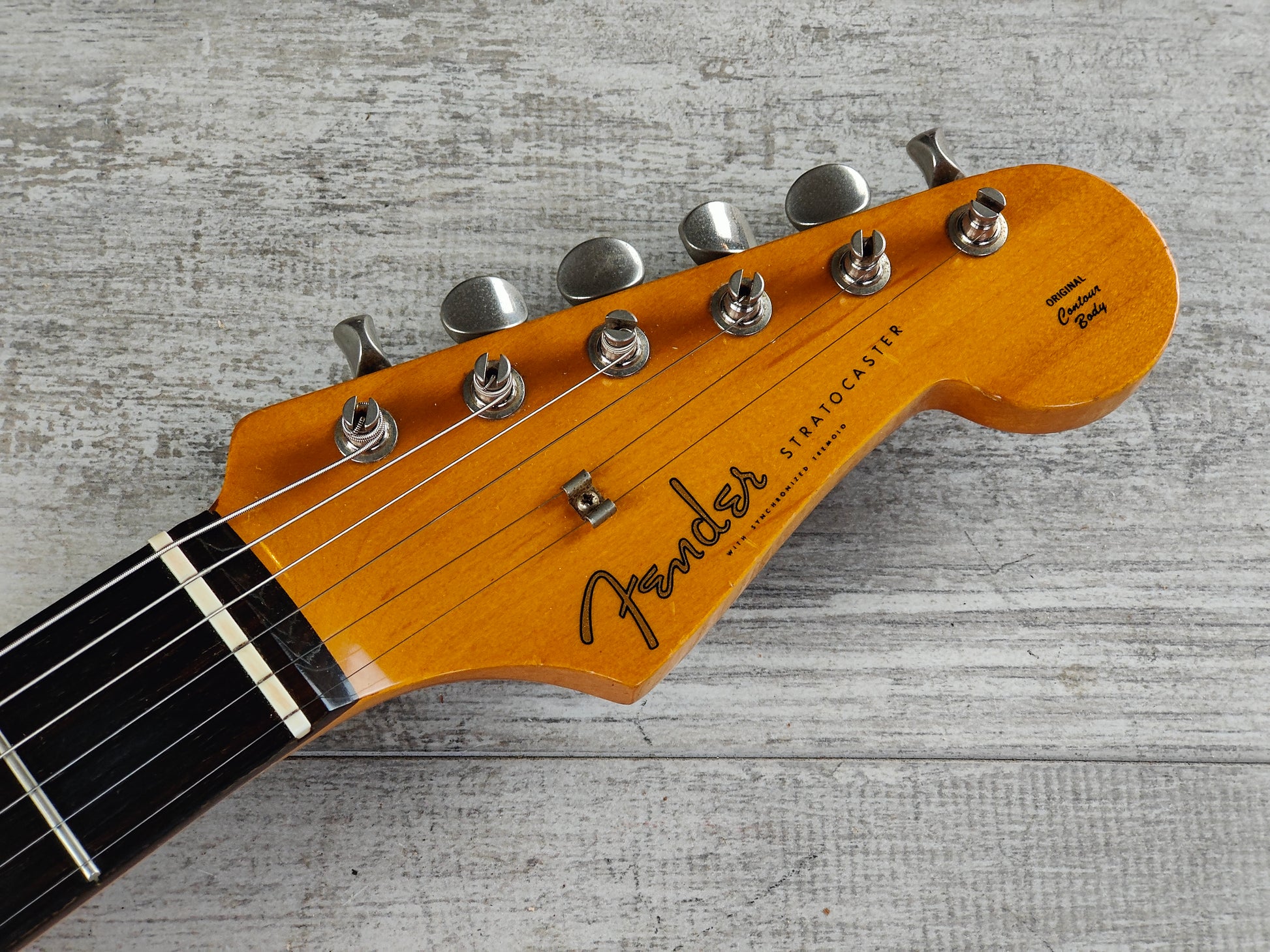 Made by the Fujigen factory in 1993, the ST62-53 was Fender Japan's base model '62 Reissue Stratocaster. Sunburst finish on a basswood body with a maple neck, rosewood fingerboard (7.25" radius), it weighs 3.6kg's. Loaded with the original Fender Japan ceramic single coil pickups controlled by a 5-way selector.