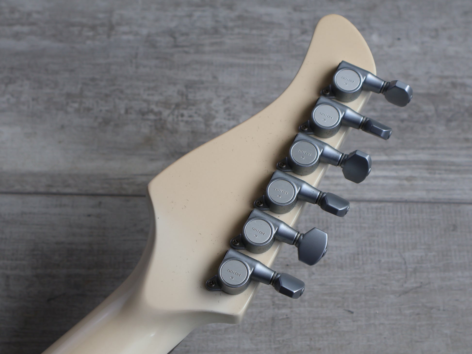 Equipped with two humbuckers, it produces a powerful sound. The tuning pegs are made by Gotoh and the bridge is a Gotoh Wilkinson, ensuring stable tuning and smooth arm action.