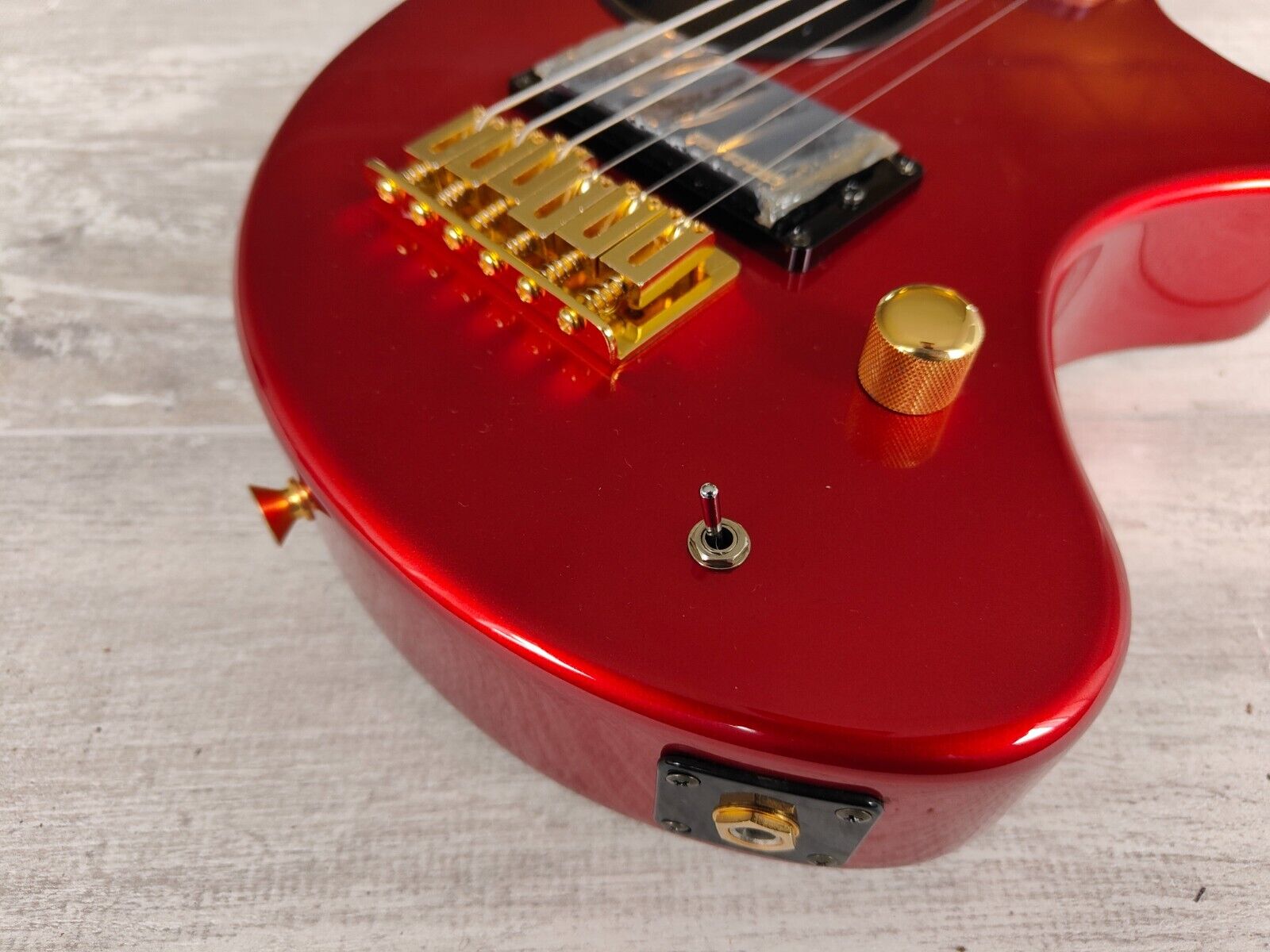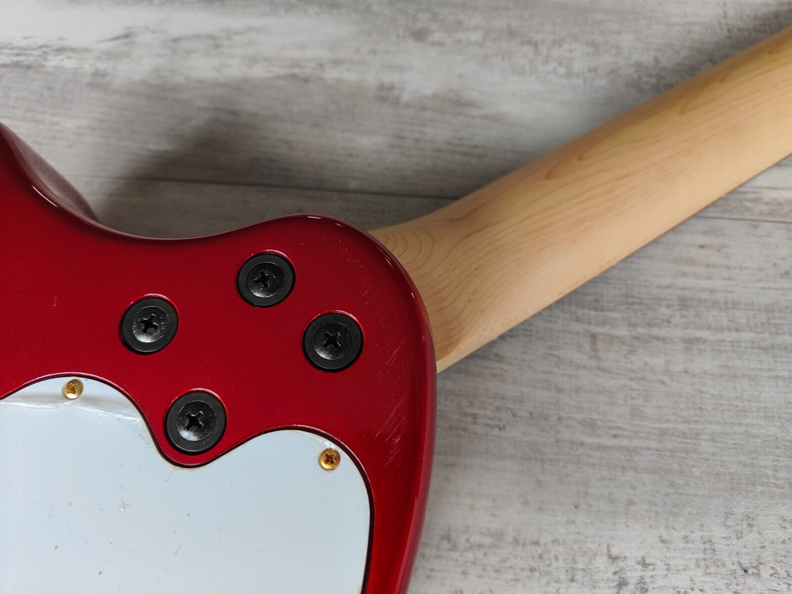 Red finish with a matching headstock, given a full setup and service prior to listing.