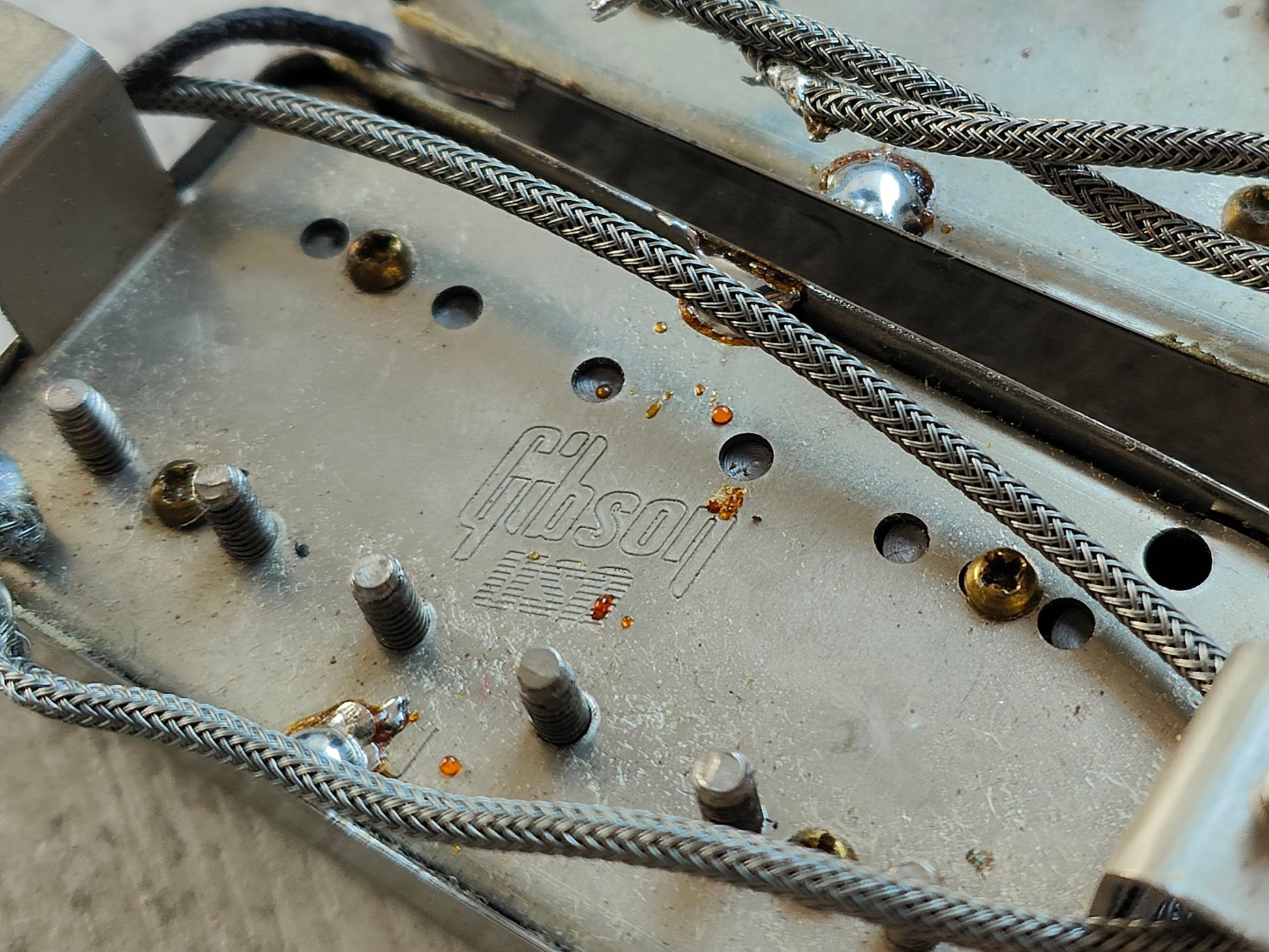 Professionally removed from an Orville by Gibson. Plenty of length left in the wiring, output readings as pictured.