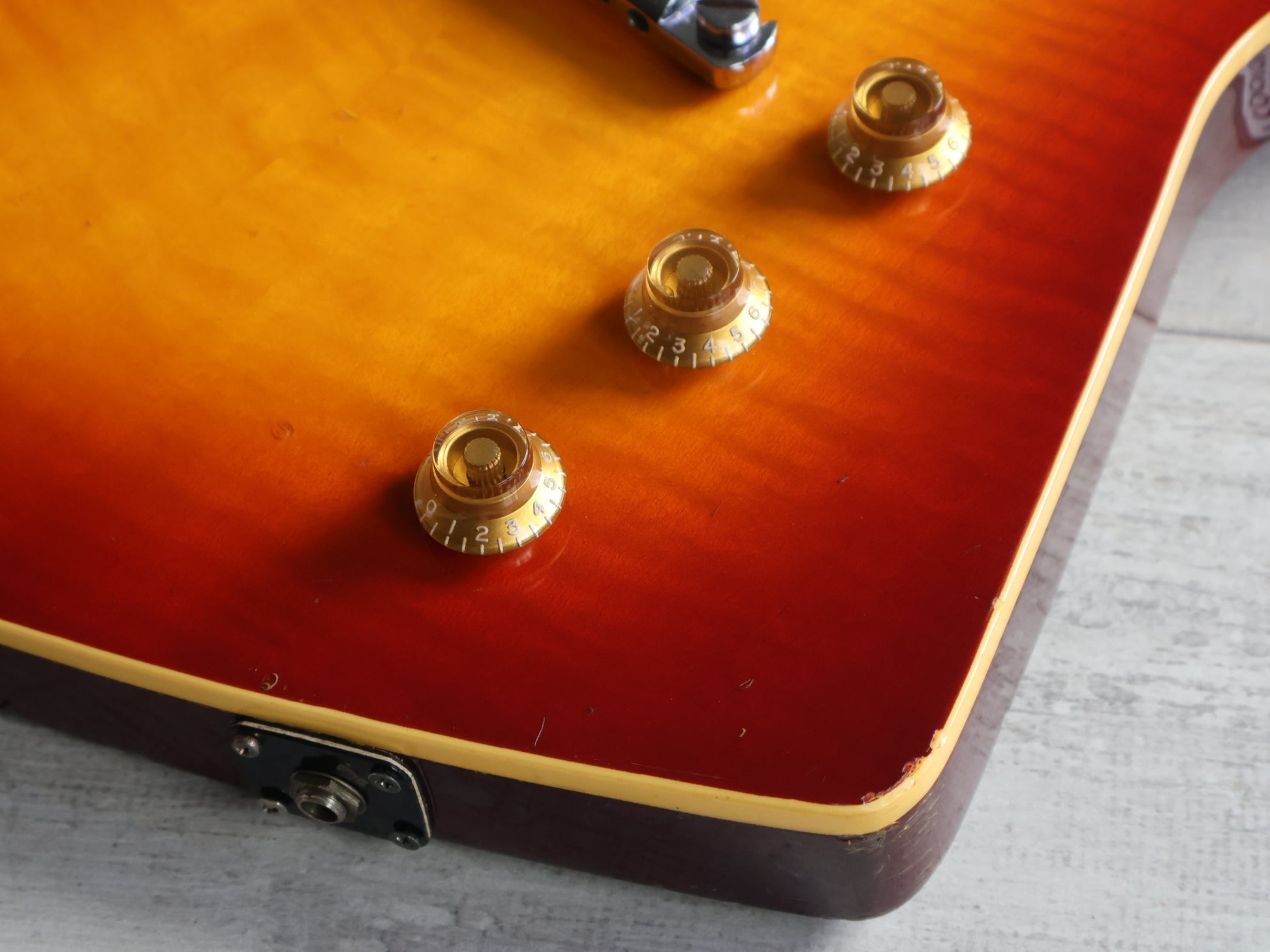 Loaded with a pair of aftermarket Tokai humbuckers with the original Greco tuners and hardware. Clean overall condition with some bonus holes from moving the strap button but no breaks or repairs. The neck is straight and the truss works as it should, the frets have some wear as expected but are shiny with plenty of life left.