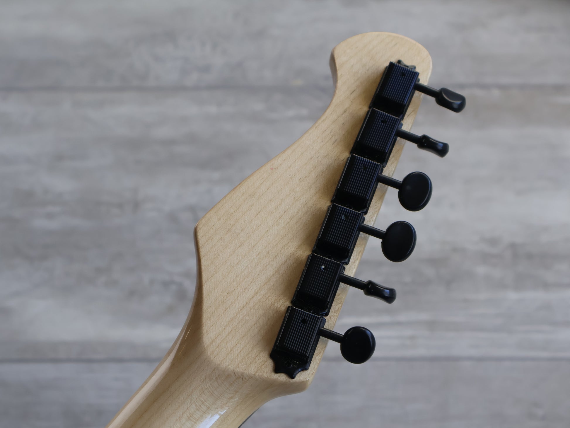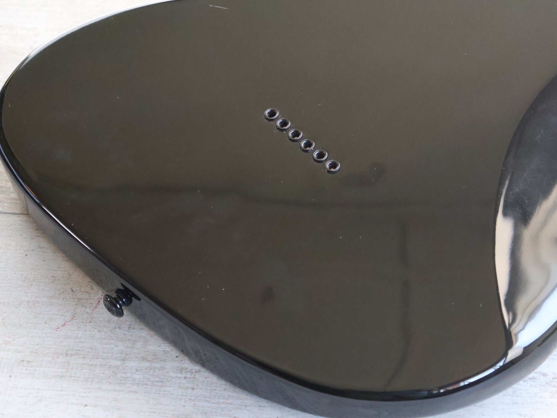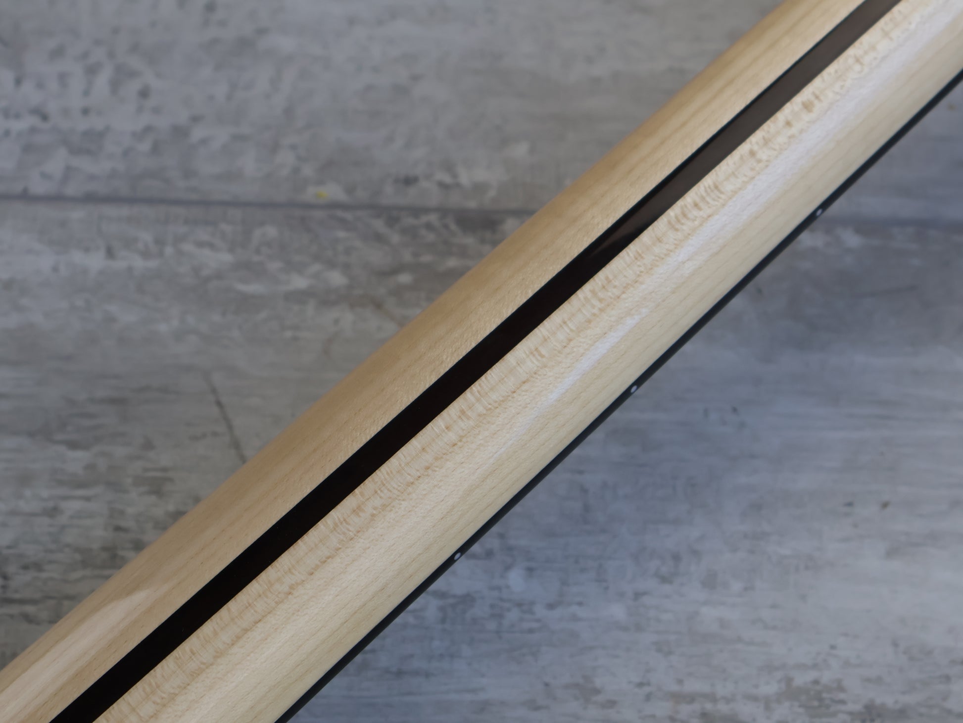 The JA-Baritone: Perfect for stoner rock and surf music! This design extends the JA concept with a longer, 30" scale-length to add even more contour and power to your riffs. Loaded with two P-90 pickups, you get all the clarity of single-coil pickups, but with a more ferocious and powerful sound. Thanks to the fixed bridge the JA-Baritone can take all of the beating without going out of tune. The classic black gloss finish is just the icing on top!