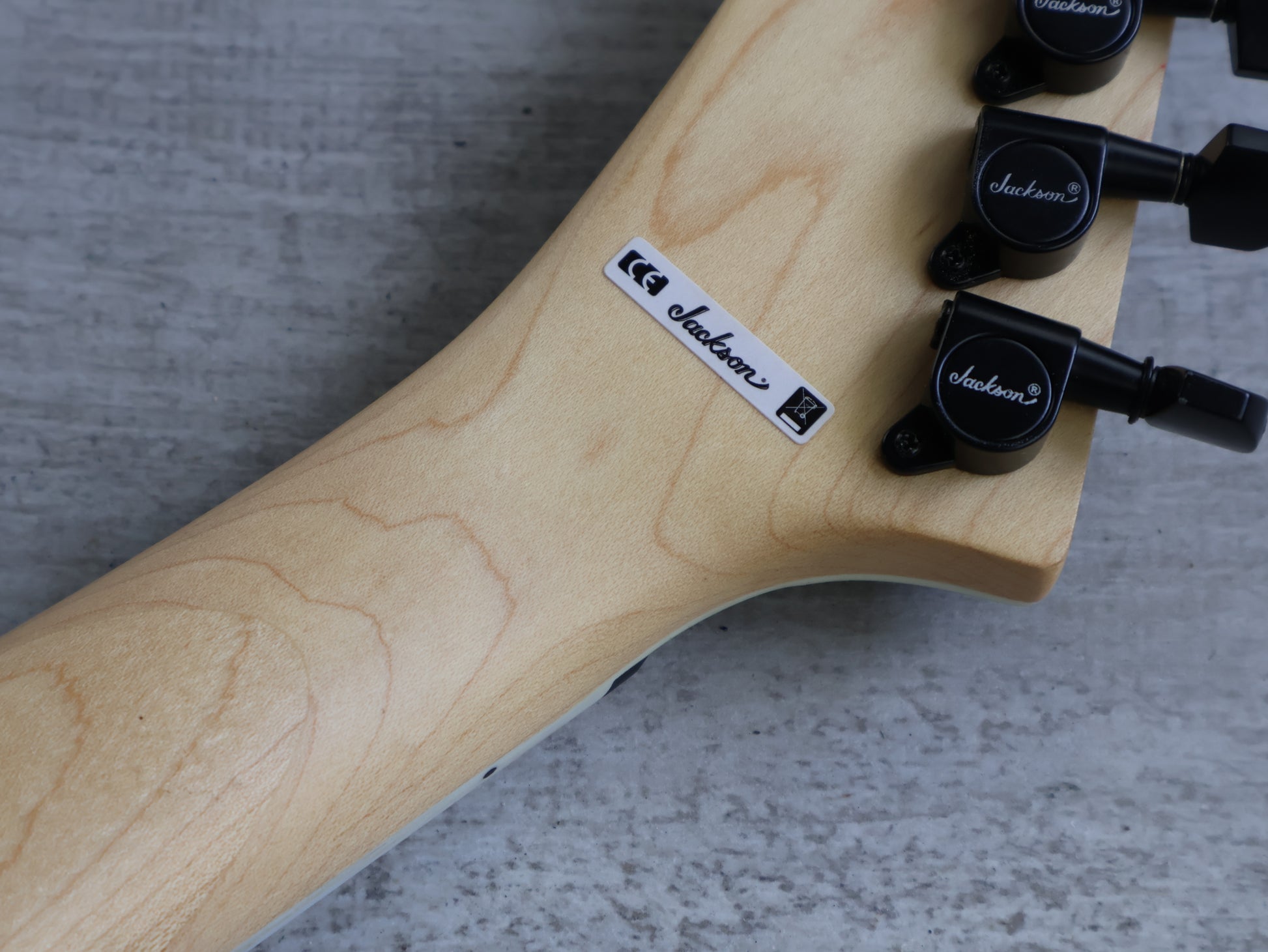 A pair of Jackson high-output humbucking pickups with ceramic magnets cranks out clear tone with plenty of girth, and can be shaped with a three-way toggle switch and single volume and tone controls.