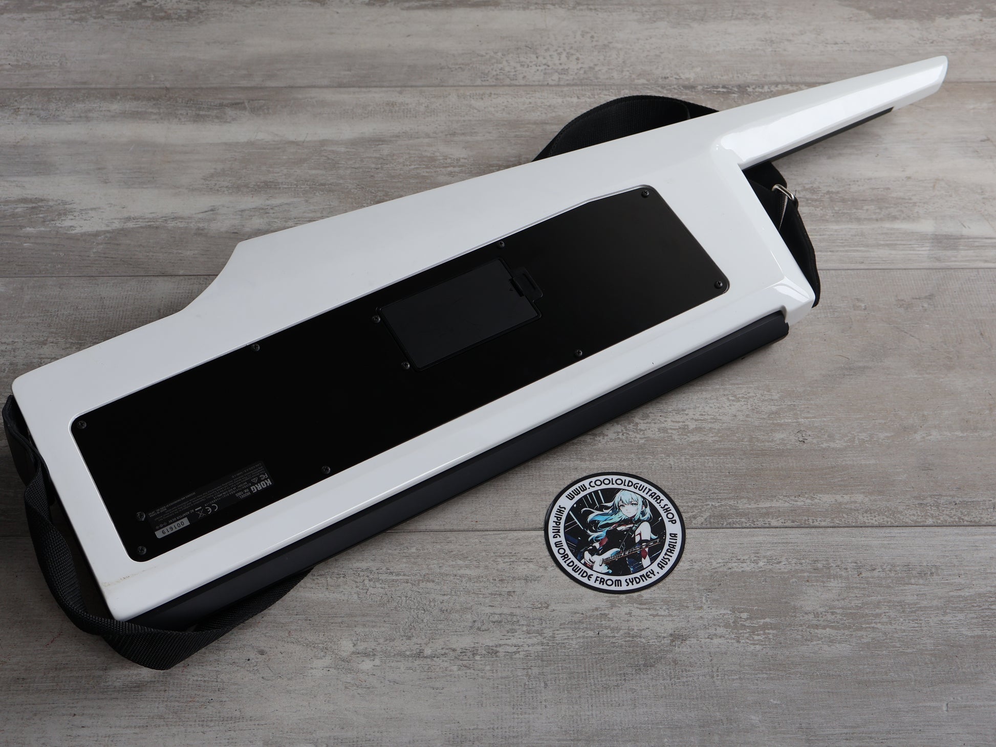 Now, thirty years later, the RK has been resurrected. Although beautiful curved surfaces have been added, the essence of the original and very popular design is unchanged. What had been a somewhat large and heavy body has been made more compact and lightweight thanks to modern components such as a slim keyboard. While the original required an external sound module, the new RK-100S contains a built-in analog modeling sound generator.