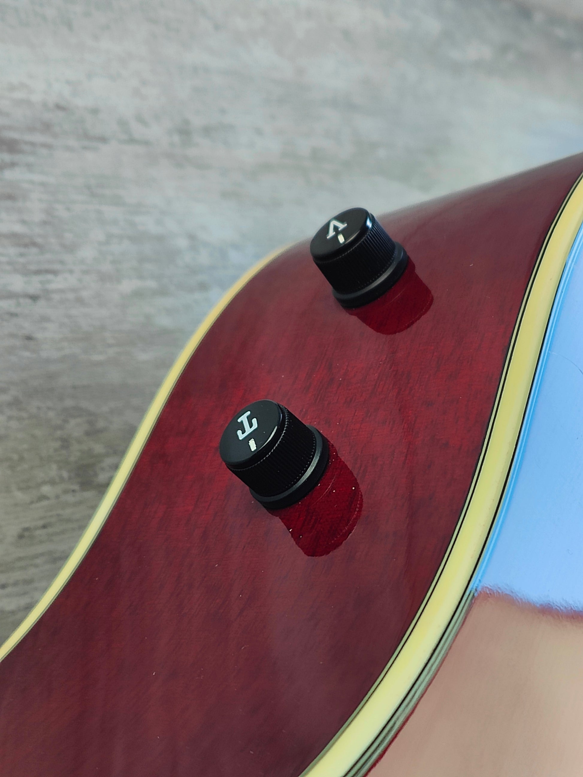 Morris' traditional G series. The "G-35" is a passive type electric acoustic guitar with a solid spruce top. Although it is passive, it has volume and tone controls on the side of the body, making it an ideal guitar for stage performances.