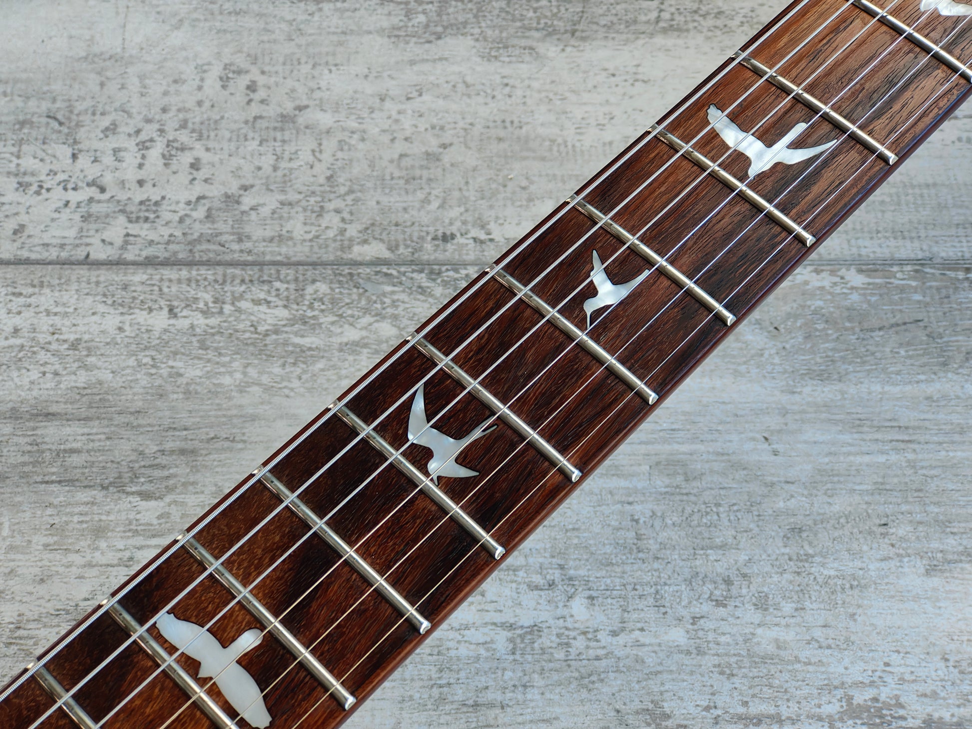 The SE Custom 24 brings the original PRS design platform to the high-quality, more affordable SE lineup of instruments. Played by internationally touring artists, gigging musicians, and aspiring players, the SE Custom 24 features a maple top, mahogany back, wide thin maple neck, rosewood fretboard with bird inlays, and the PRS patented molded tremolo. Its versatile sounds come from the 85/15 “S” pickups paired with a volume, push/pull tone control, and 3-way blade pickup selector.