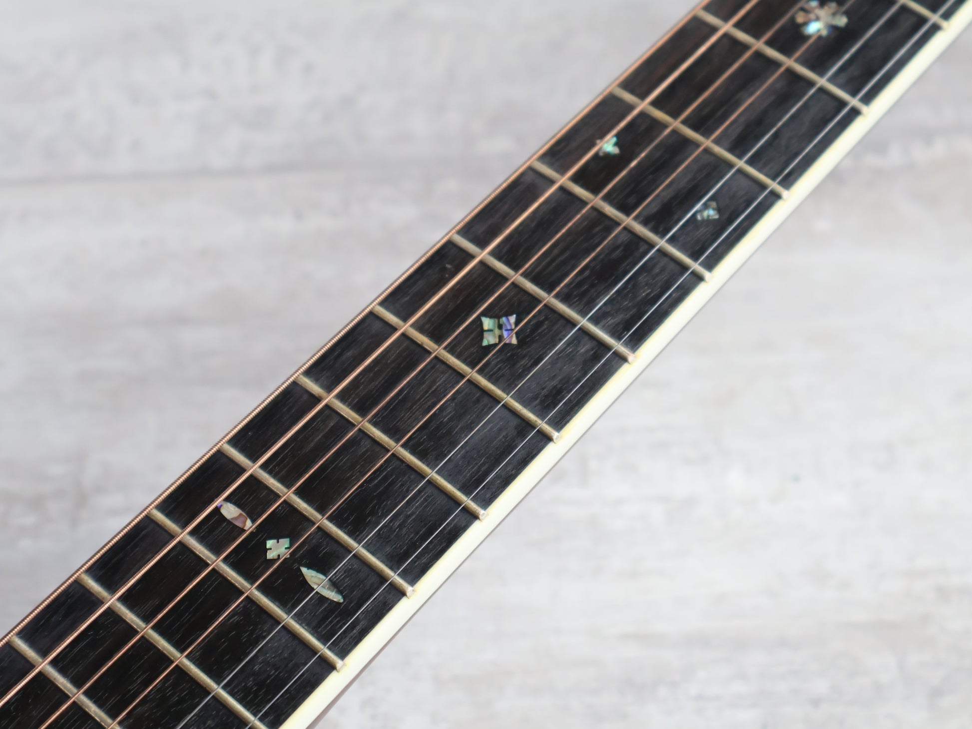 The S000R-41 Limited Edition 000-bodied guitar combines solid Sitka Spruce for the top with Solid Indian Rosewood for the back and sides. Limited to just 60 guitars worldwide, this LE model is beautifully built and highly rewarding for the fingerstyle guitarist. Rich abalone has been used throughout for the inlays and binding, giving this guitar a premium look to match the beautiful solid tonewoods. A jet black ebony fretboard is complemented by a bone nut and saddle, while gold Grover open-gear tuners complete the package.