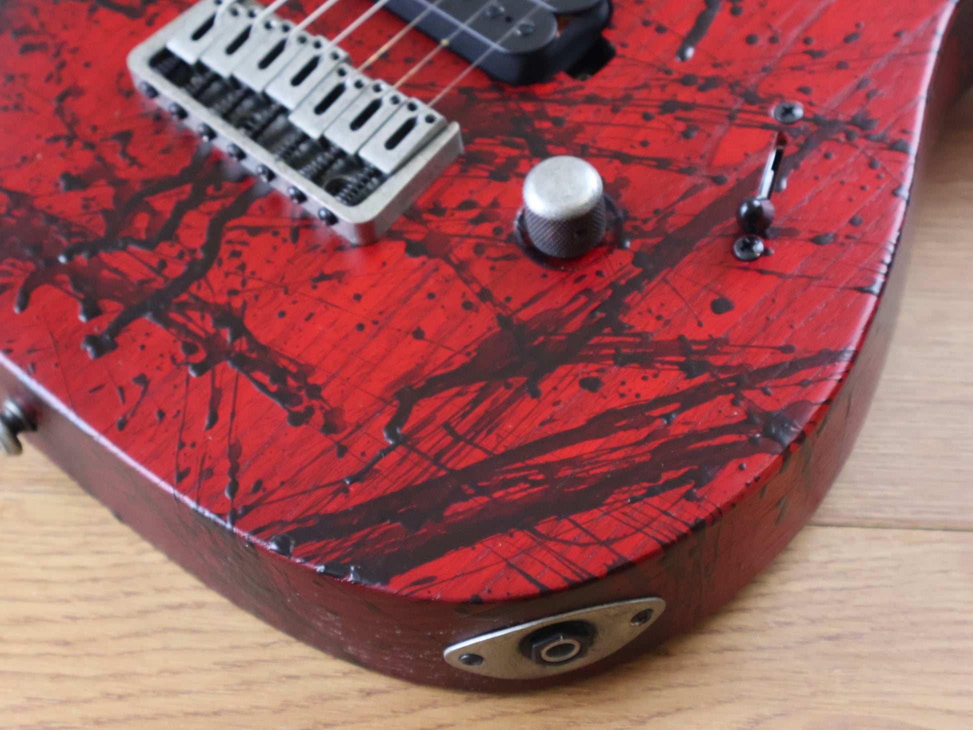 This Type A2.7CANIBALISMO+ six-string guitar boasts stealth looks, a distinctive cutaway scoop and a remarkable feature set, making it a precise, professional instrument suitable for both stage and studio work. It comes loaded with a reliable string-through-body hardtail bridge .It also features a set of newly designed Duncan Solar+ (Plus) high gain pickups, featuring Alnico VIII magnets, for maximum impact, grind and aggression. The Type A2.7CANIBALISMO+ features a set-thru neck/body joint design with 26.5” scale, a sungkai body, a fast, thin, comfortable maple neck and a rosewood fingerboard with 24 super-jumbo frets. It includes Solar 18:1 tuners, PPS nut, distressed antique black hardware, five-way blade pickup switching and full access neck. Available in blood red open pore matte with blood splatter finish.
