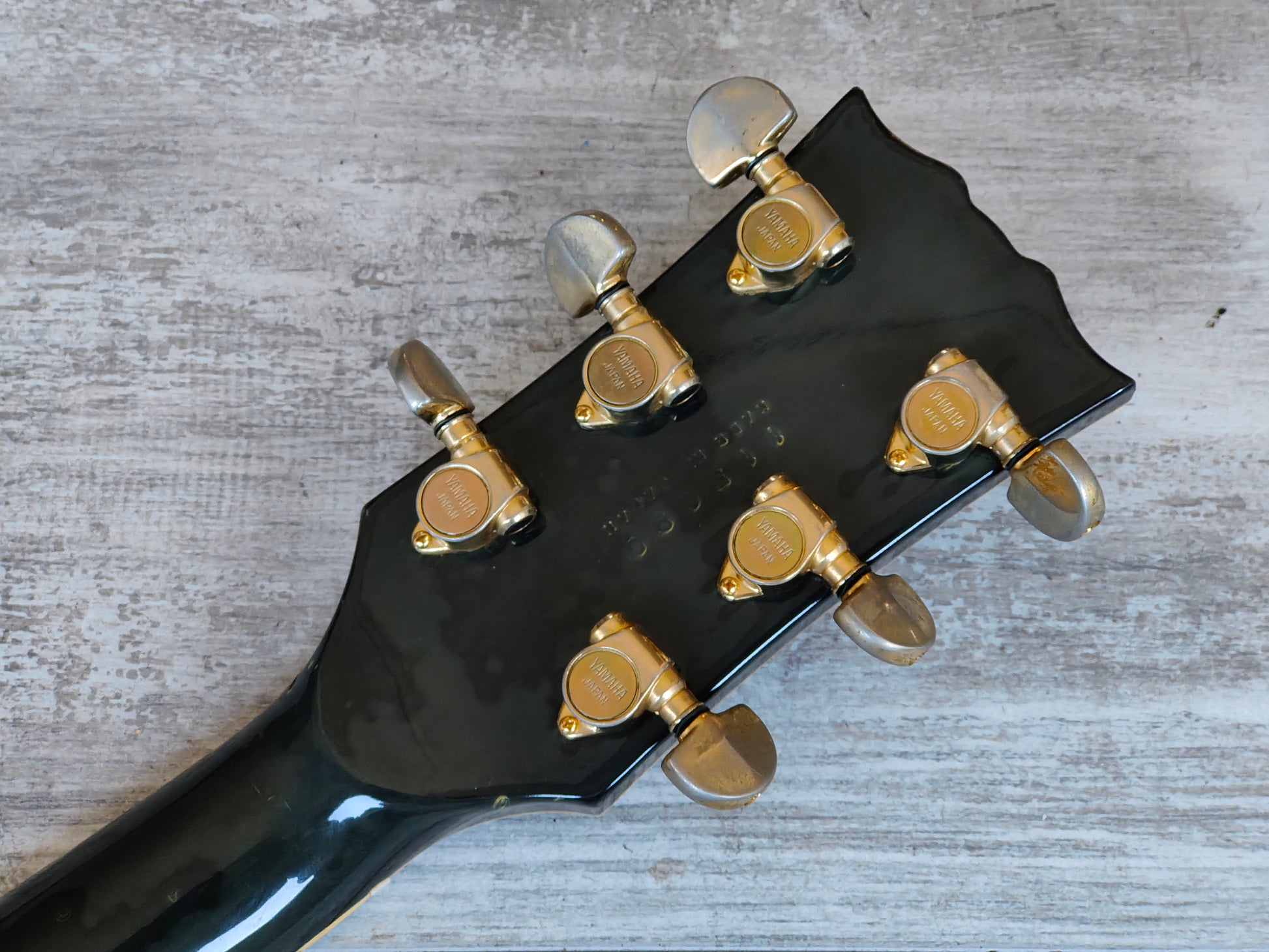 Loaded with the original Spinex pickups with coil splits on the tone knobs along with the original bridge, tailpiece and Yamaha stamped tuners.